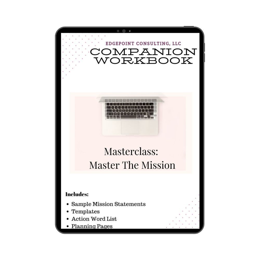 I designed the workbook to accompany my Master The Mission Masterclass. It is a step by step guide to crafting a powerful and engaging mission statement. I've added loads of examples and freebies to help you put your mission statement to work for your organization. It is an interactive text that should be written in and annotated as you craft and draft your mission statement.